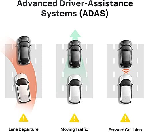 ADAS System Featured Dash Cam: Advanced Driving-Assistance System (ADAS) detects surroundings and has real-time voice alerts to warn you of safety issues. The camera automatically detects lane markings and issues voice alerts when the car is leaving the lane. The dashboard camera also identifies the vehicle ahead and calculates the speed and distance of the car ahead to avoid collisions ahead while driving.
